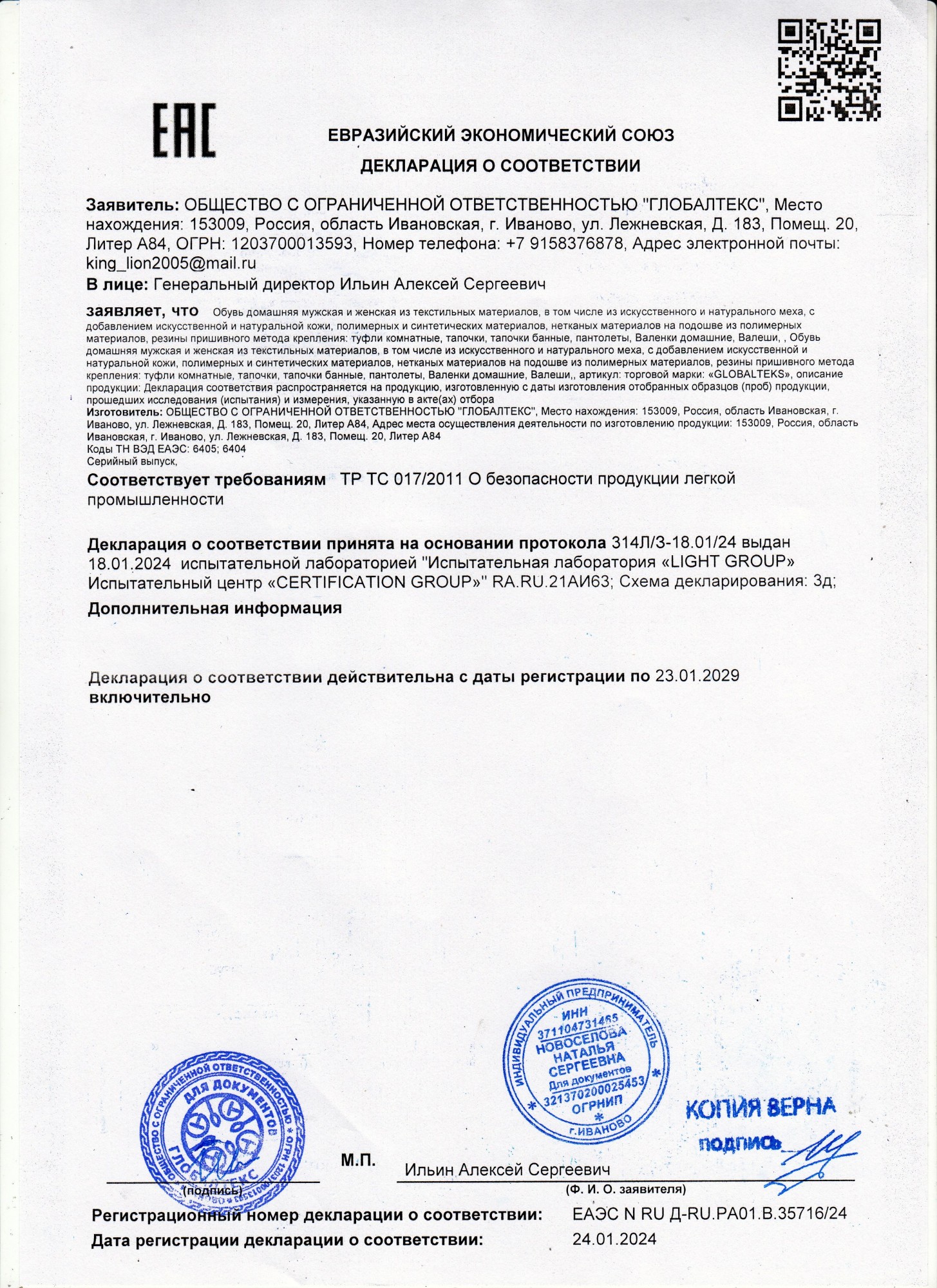 Документы производителя Взрослая обувь